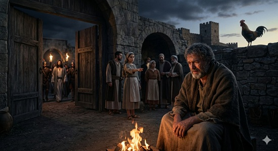 예수님께서 붙잡히신 뒤 다른 제자들이 흩어질 때에도 그는 “멀찍이” 따라 대제사장의 집 뜰까지 들어갔던 이 장면은 그의 특별한 추종과 함께 자기 내면의 모순성을 잘 보여 줍니다. 그는 다른 제자들과는 다른 열정과 담대함이 있었지만, 그 안에는 연약함과 불완전함이 함께 있었던 것입니다.