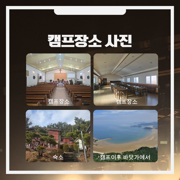 예배 찬양은 NEW All Nations Worship팀과 30min Worship팀이 맡아 영성 있는 찬양으로 집회를 섬깁니다. 캠프 장소인 태안 삼은교회와 숙소인 안나공동체 펜션은 수려한 자연경관을 갖추고 있어 참가자들에게 영적인 훈련과 더불어 정서적인 쉼과 회복의 시간도 제공할 것으로 기대됩니다.